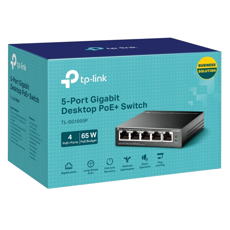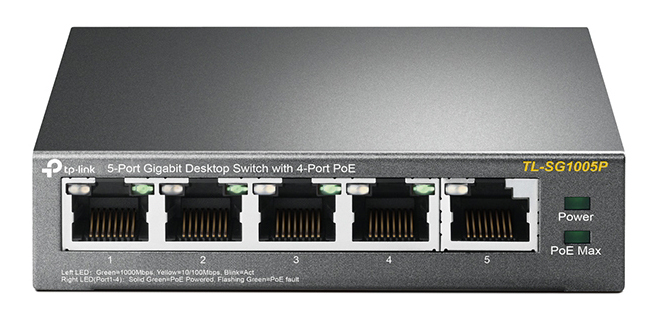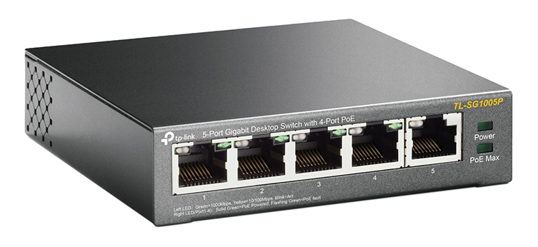 -0% PoE Оборудование .5-port Gigabit Switch TP-LINK "TL-SG1005P", with 4-Port PoE, steel case, 65W Budget, Autorecovery в наличии 969 lei