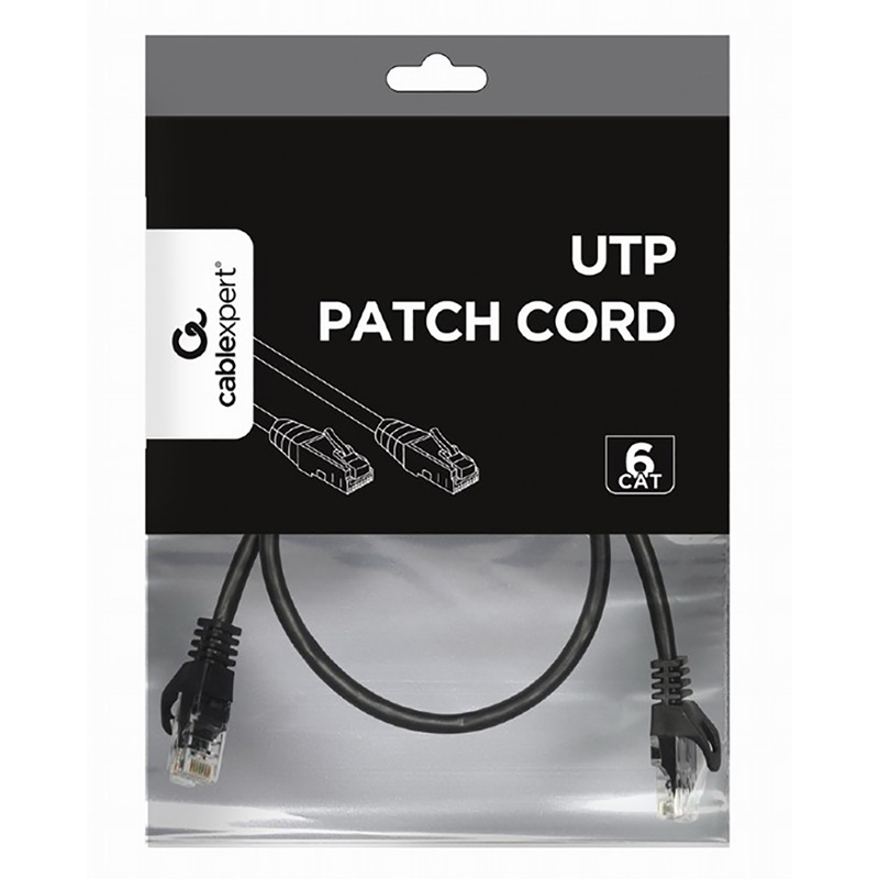 Патч-корд Cablexpert PP6U-0.5M/BK, Cat6 UTP, 0,5м, Чёрный